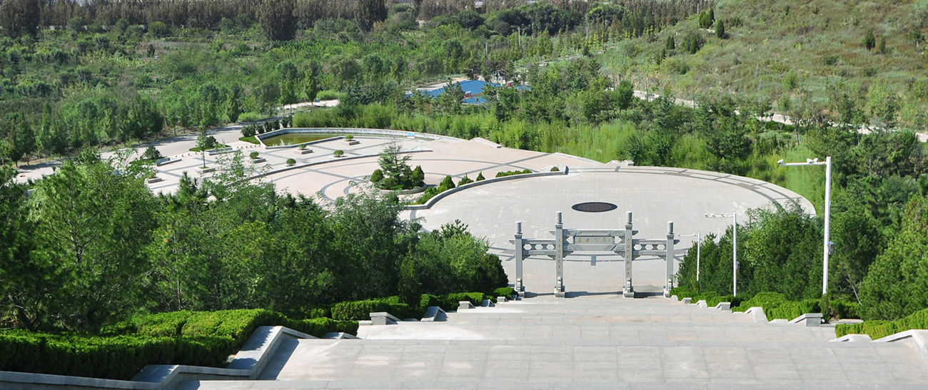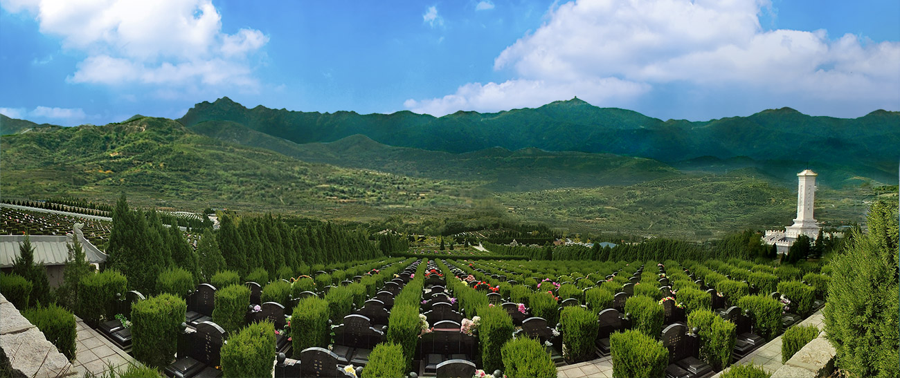 公墓坐北朝南、明堂寬廣、視野開闊、群山起伏、山水環(huán)繞,視同聚寶盆,藏風(fēng)聚氣。
